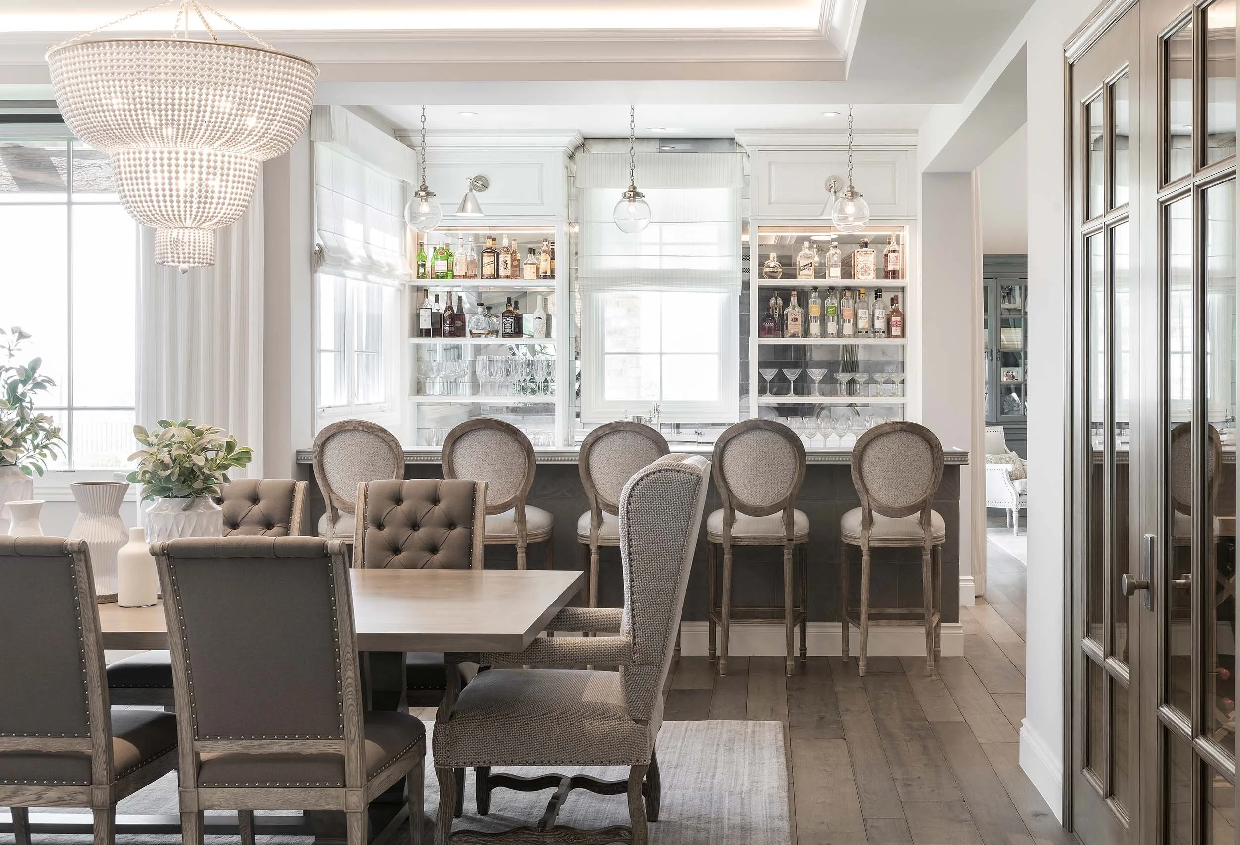 Built for a professional athlete, this home was designed around the idea of fun, relaxation, and connection. While the residence features elegant living and entertaining spaces throughout, it also includes a variety of unexpected experiences that make it truly one of a kind. A lazy river encircles the pool, allowing guests to float beneath bridges and around the property’s outdoor retreat. Upstairs, a bar and entertainment room overlook the city skyline, creating the perfect setting for gatherings. With the touch of a button, a clerestory window opens and a hidden basketball hoop extends from the attic space above the garage. When the game ends, another touch retracts the setup, returning the space to its seamless design. Every detail was built to blend luxury with play in a home that celebrates joy and motion.