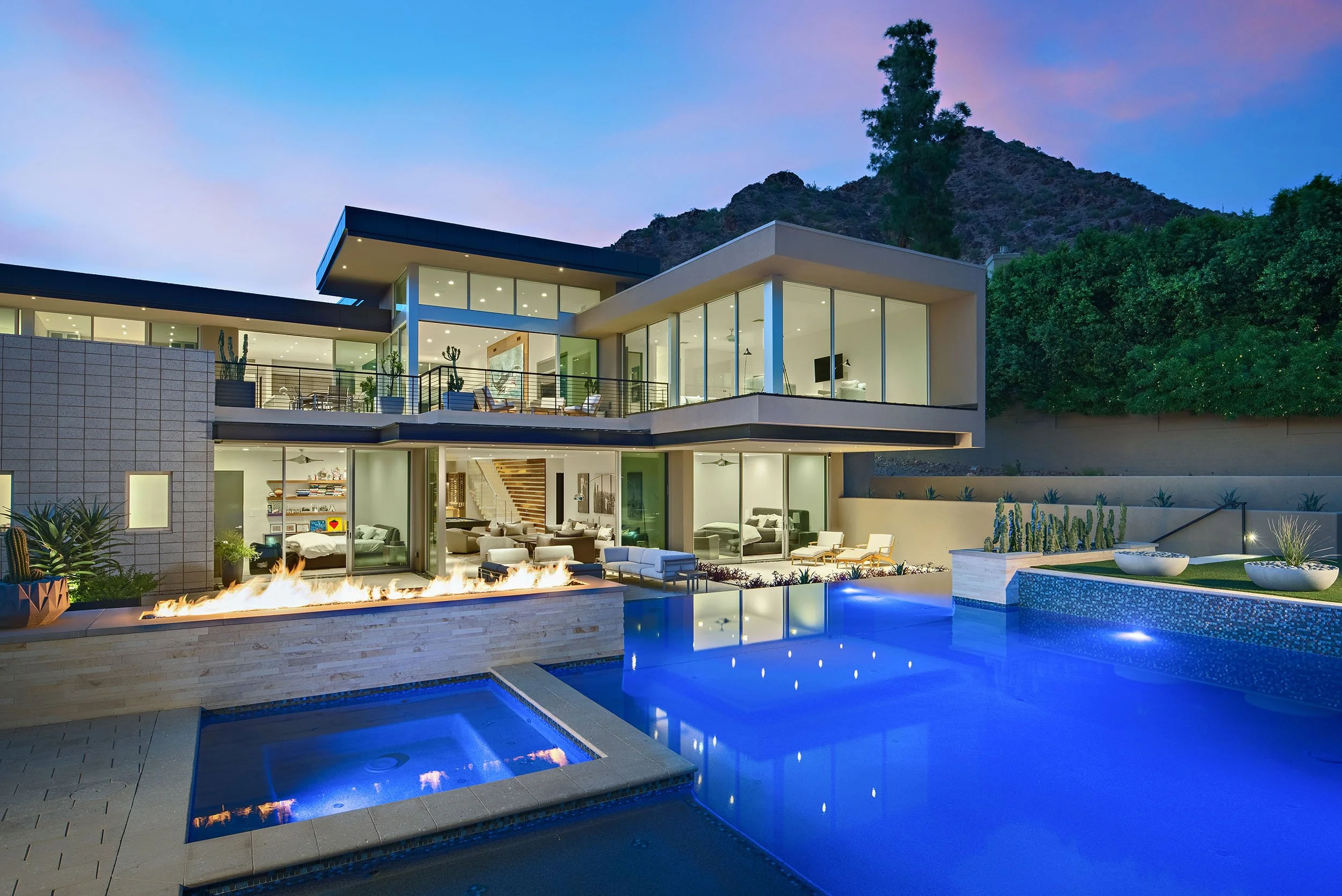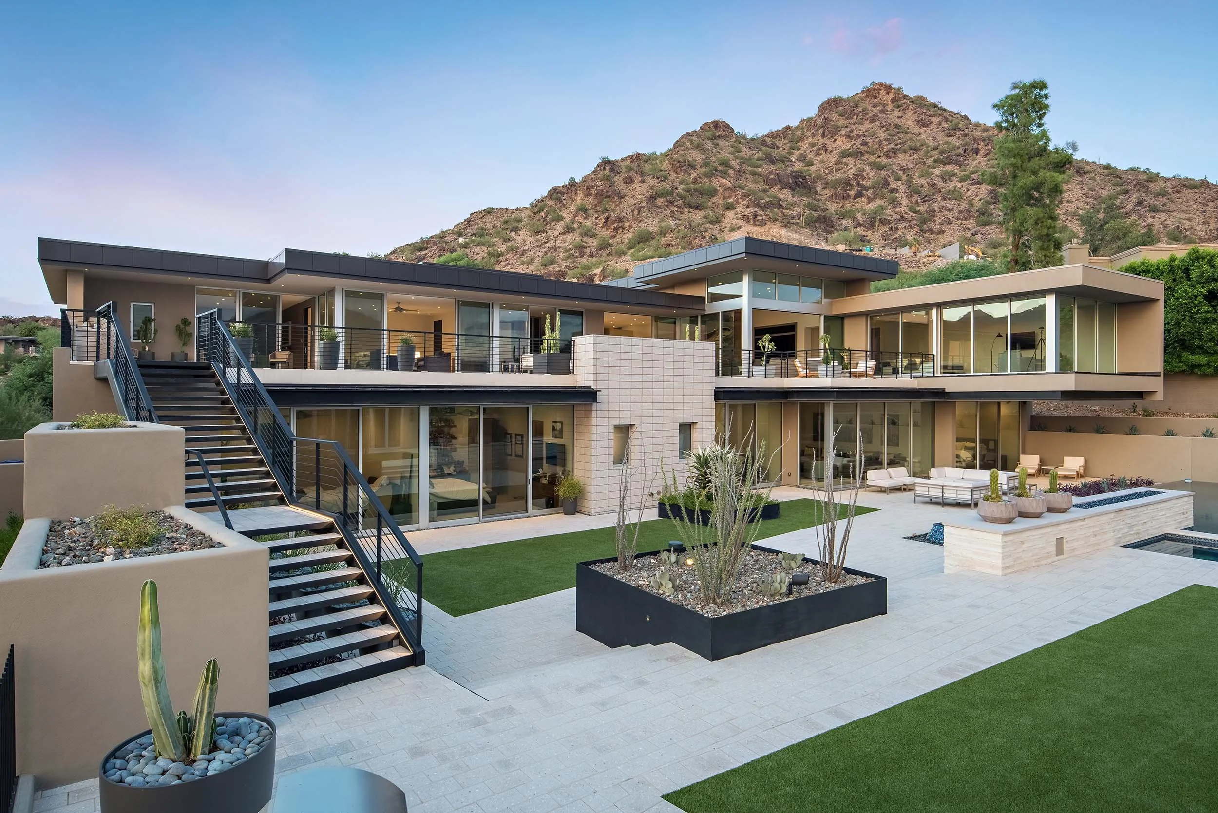 This hillside estate was created for a family whose roots span both Germany and the United States. With their children studying and living in Arizona, the home was envisioned as a gathering place that bridges distance and celebrates connection. Designed by PHX Architecture with interiors by Est Est Design, the residence takes full advantage of its elevated setting, capturing striking views of Camelback Mountain and the city beyond. Despite the steep terrain, the design accommodates a full tennis court and a generous pool terrace that encourage outdoor living. Inside, thoughtful details invite relaxation and play, from a private theater to a hidden-entry “man cave” featuring a race car display, golf simulator, and bar. Every element was crafted to bring family and friends together in comfort and style.